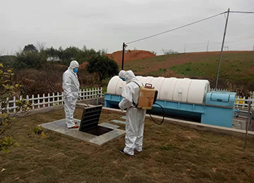 2021年12月22日科然環(huán)境運(yùn)維組員工為號(hào)召國(guó)家防控疫情政策,對(duì)各個(gè)終端和管網(wǎng)的污水池進(jìn)行全面的清掏、消殺工作。運(yùn)維組消殺人員配有專業(yè)的防護(hù)服、手套、口罩以及專業(yè)的消殺工具。